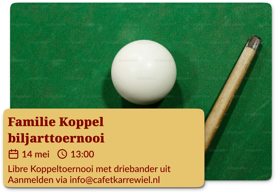 Bij ’t Karrewiel organiseren we regelmatig leuke en gezellige evenementen! Op deze pagina vind je onze aangepaste openingstijden en een up-to-date agenda zodat je nooit meer iets mist van ons.